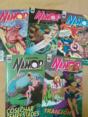 - Y para terminar, un error del pasado que enmendé en este Saló, ya que hace muchísimo tiempo (y aun no se muy bien porqué) me desprendí de los 14 números que componían la coleción del Namor de John Byrne que publicó Forum; pues bien, la recuperé completa y unos tres días después, en una tarde de calma en un parque, a la sombra de un árbol y mientras mi hijo de 5 años correteaba con sus amigos, la pude saborear de nuevo y me di cuenta de lo buena que es y lo grande que era John Byrne en aquella época. Sin ser una de las obras más recordadas de Byrne, le da 50 vueltas a la mayoría de las obras de super-héroes que se están publicando ahora mismo.