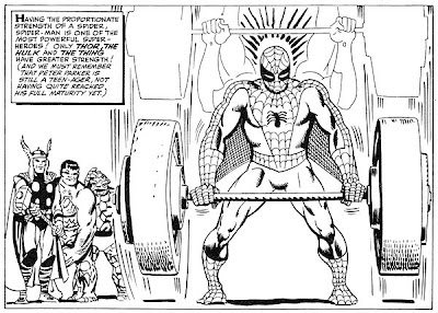 Los dibujos de Ditko por sí solos ya convierten a Spiderman en una obra maestra... ese Peter tan creíble, esos arabescos imposibles de Spiderman y especialmente ese héroe tan "frágil" en comparación a las poderosas figuras que dibujaba Jack Kirby y que convertían a Spiderman en un heroe muy creíble y cercano.