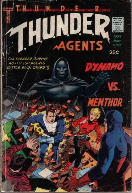 Los T.H.U.N.D.E.R. Agents son un grupo de héroes a medio camino entre super-héroes y agentes secretos internacionales, que durante 20 números (aunque el último ya solo contaba con reimpresiones en su interior) publicados por Tower Comics y repartidos entre 1965 y 1969, significaron una verdadera alternativa a los cómics de super-héroes de las dos grandes (Marvel y DC) en plena Silver Age y en una época donde no existían alternativas de este tipo. Aunque finalmente (y desgraciadamente), el poder de las dos grandes terminó con esta magnífica alternativa, ya que los muchos problemas de distribución que tuvieron que sufrir a lo largo de toda su andadura, terminaron repercutiendo enormemente en su destino final.