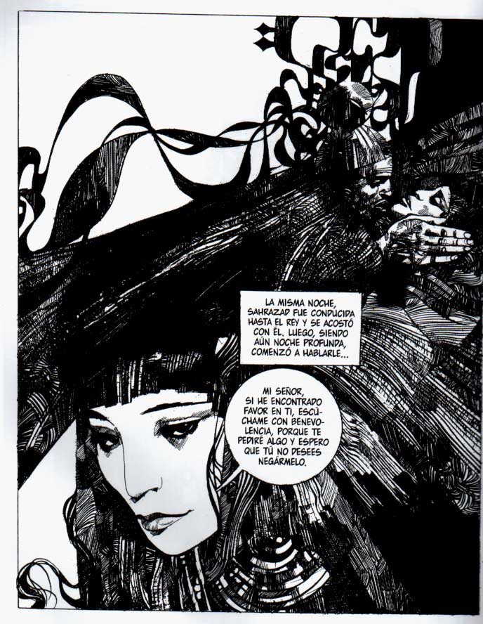57- Sahrazad de Sergio Toppi: Tener que elegir una sola obra de este maestro absoluto del 9º Arte y de la ilustración es, sin duda, una empresa difícil. No obstante he escogido la opción fácil, Sahrazad, una de las más conocidas y celebradas obras de este genio incomparable del fumetti.