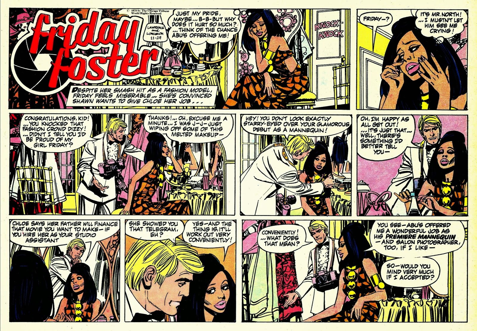 Pese a no ser una obra excesivamente conocida ni reeditada, posee mucha importancia dentro de la historia del 9º Arte, pues es el primer cómic de la historia protagonizado por una mujer afroamericana. Jim Lawrence como guionista y Longarón encargándose de la parte gráfica, crearon al personaje durante 1969, aunque su primera tira no fue publicada hasta mediados de Enero de 1970. El gran Jordi Longarón, sin ningún género de dudas uno de los más grandes artistas que ha dado la historia del cómic español, ilustró la serie desde 1970 hasta 1974, siendo reemplazado posteriormente por Gray Morrow, aunque la serie ha pasado a la historia principalmente por el arte de su creador gráfico, Longarón.