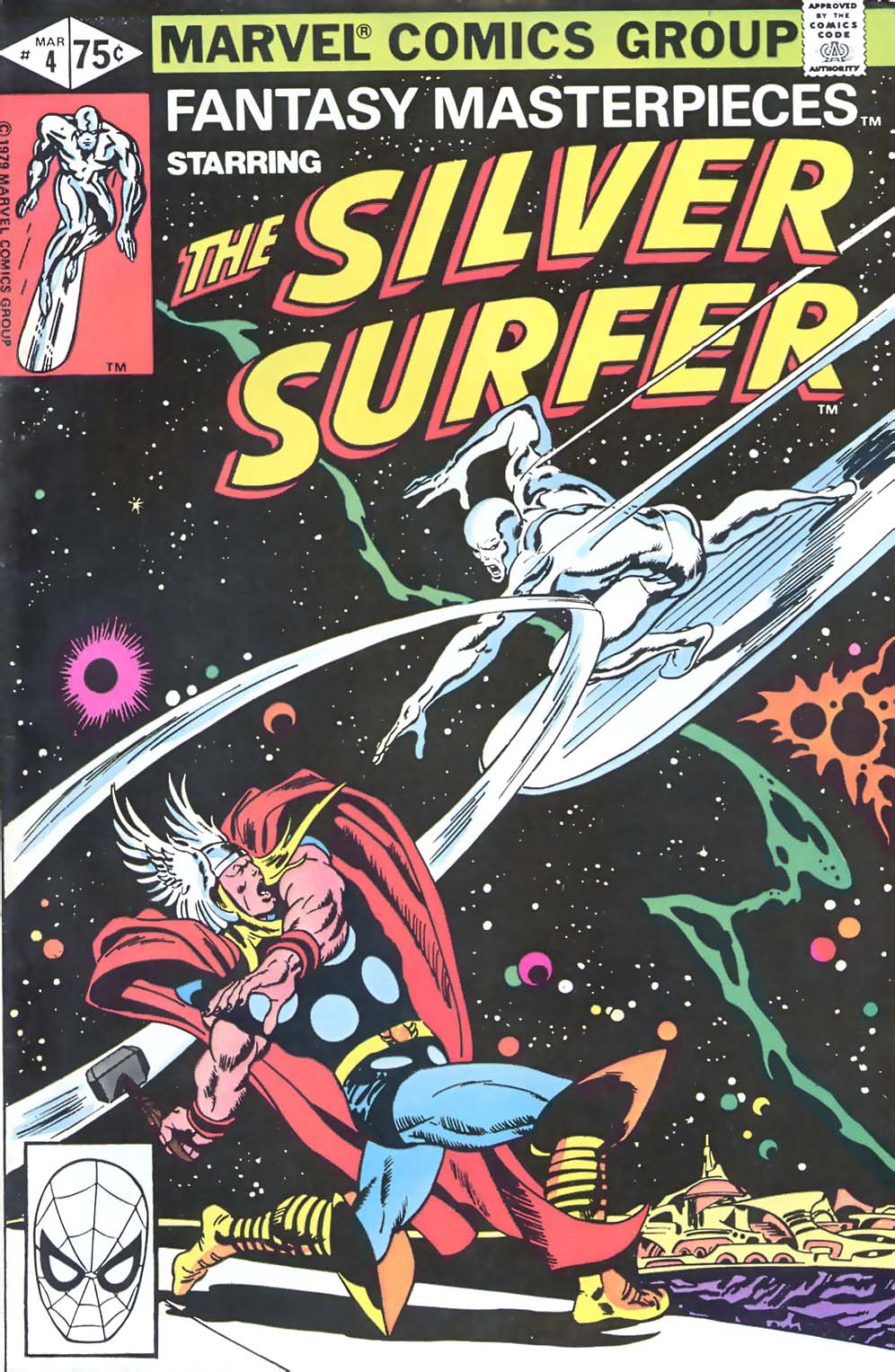 Reedición del Silver Surfer nº 4 dentro de la colección Fantasy Masterpieces (volumen 2, Marzo de 1980), con la misma portada de Buscema, aunque recoloreada (y retocada) para la ocasión: