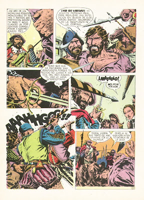 Comentario: Por fin la edición en español de este libro publicado ya hace un tiempo por Dynamite en los USA. Cada artista cuenta con una pequeña sección que oscila entre una y cinco o seis páginas de extensión, dependiendo de la importancia que les atribuya Roach. Algunos de los más destacados cuentan con un artículo sobre su trayectoria, mientras que el resto solo cuentan con algunas muestras de su arte, sin más datos. Me sorprende muchísimo, por ejemplo, que no haya ningún apartado dedicado a Jaime Brocal Remohí, así como que ni Carlos Giménez ni Santiago Martín Salvador (siempre infravalorado... siempre un artistazo falto de reivindicación) sean de los que cuentan con artículo dedicado y un mayor número de páginas, como si no fueran de los más destacados entre todos estos artistas. Borrones importantes, sin duda, en un libro que, no obstante, debe ser celebrado por lo que representa y por hacer lo que alguna editorial patria ya debería haber hecho hace mucho tiempo... reivindicar a nuestros grandes maestros del cómic.